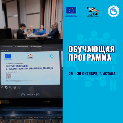 - Укрепление потенциала целевых ОГО для участия в диалоге с государственными органами на национальном уровне (разработано 4 обучающих программы, подготовлено 20 независимых публичных докладов, 80% обученных ОГО, использующих современные инструменты адвокации, уровень потенциала обученных ОГО - 70%)
